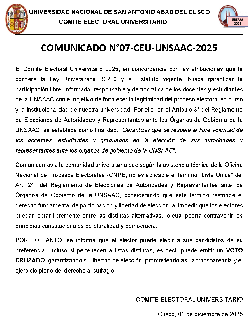 COMITÉ ELECTORAL UNIVERSITARIO UNSAAC