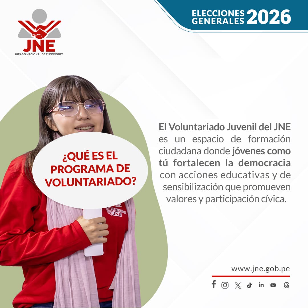El Voluntariado del JNE invita a formar parte de un espacio donde jóvenes de 18 a 29 años de todo el Perú fortalecen la democracia a través de acciones educativas y de sensibilización ciudadana.