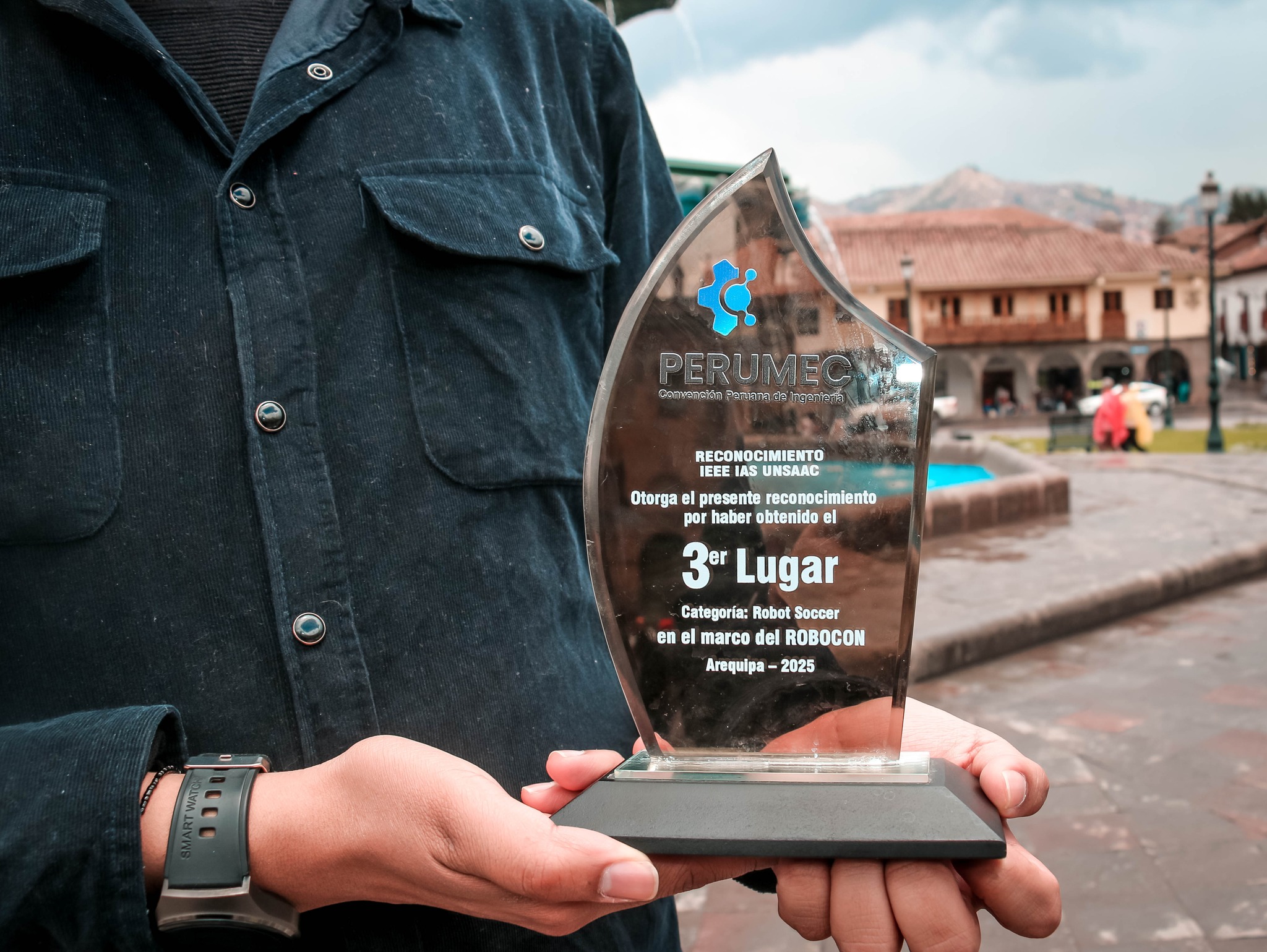 El Capítulo Estudiantil IEEE IAS UNSAAC obtuvo el tercer lugar en la categoría Robot Soccer durante el Congreso Nacional de Mecatrónica – PERUMEC 2025, evento que reunió a delegaciones de las principales universidades del país.